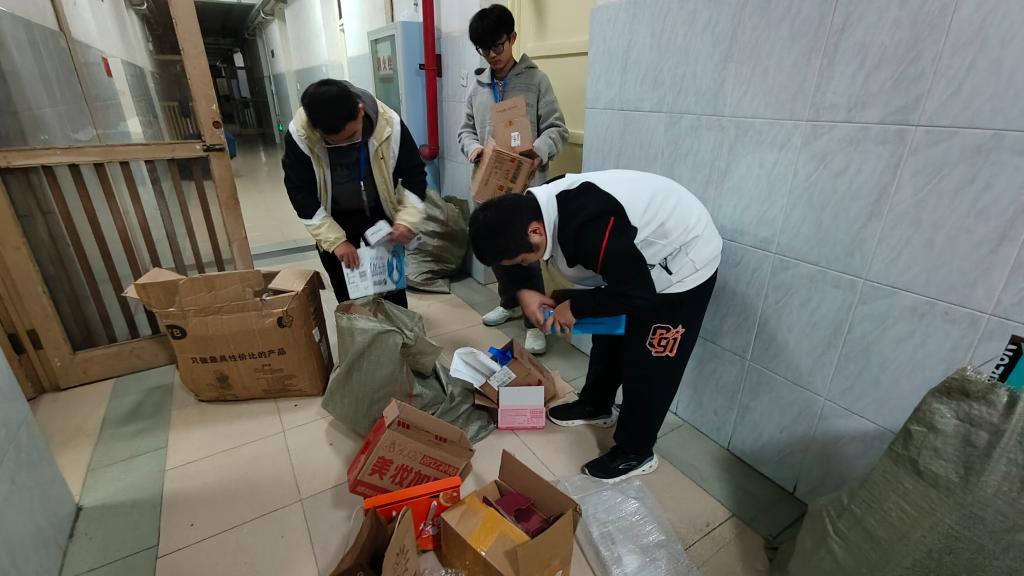在资委会阳光俱乐部的组织下,志愿者于当日晚7点在紫菘2栋楼下集合。负责人对志愿者们进行了细致培训,使大家深入了解“爱心宿舍”活动的基本流程与注意事项。培训结束后,志愿者们有序领取了活动物资,依据分工安排去往各个寝室进行纸箱收集并整理成袋。在各位义工的辛勤劳动以及全院同学的支持下,本次活动共回收14袋废旧纸箱,并转化为善款支援山区贫困儿童。