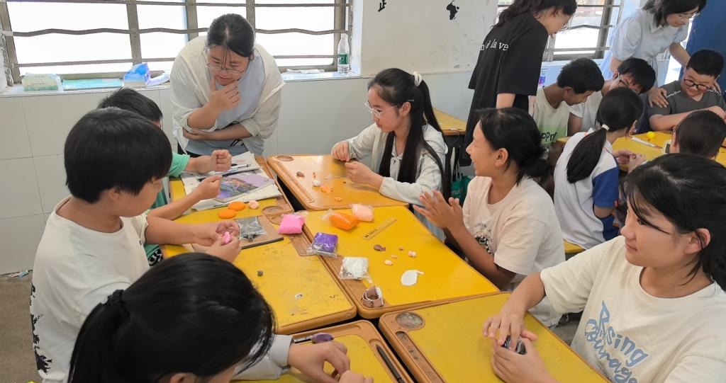 来自公管学院、社会学院、基础医学院等7个学院的10名学生,经过严格的报名选拔、课件打磨与说课培训等,精心设计一系列聚焦传统文化与非遗传承的课程,为即将升入中学的学生提供爱心托管支持、搭建成长阶梯,以青春力量回应乡村教育期盼,在田野间书写“育人先育心”的生动答卷。