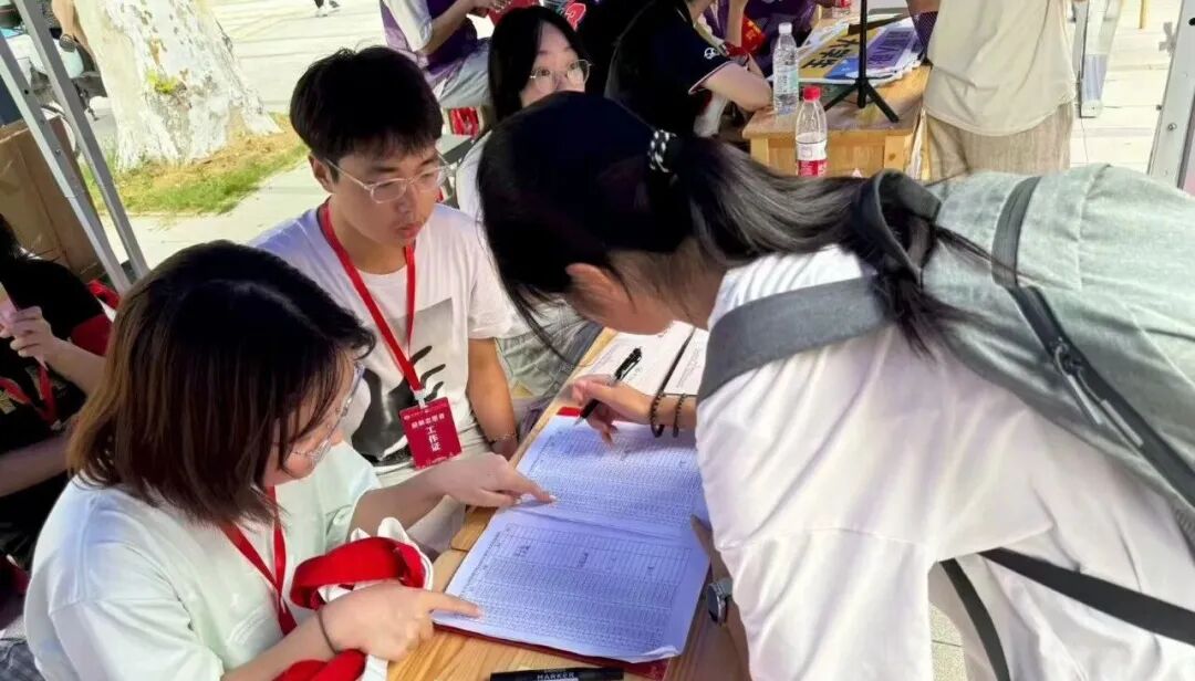 两天线下迎新期间,志愿者们始终坚守在紫菘广场迎新服务点,微笑迎接每一位新生和家长。从8月29日13点第一位新生前来报到,到8月30日15点最后一位新生完成报到,志愿者们用坚守、耐心与热情,顺利完成公管学院2025级66名本科新生的报到工作。