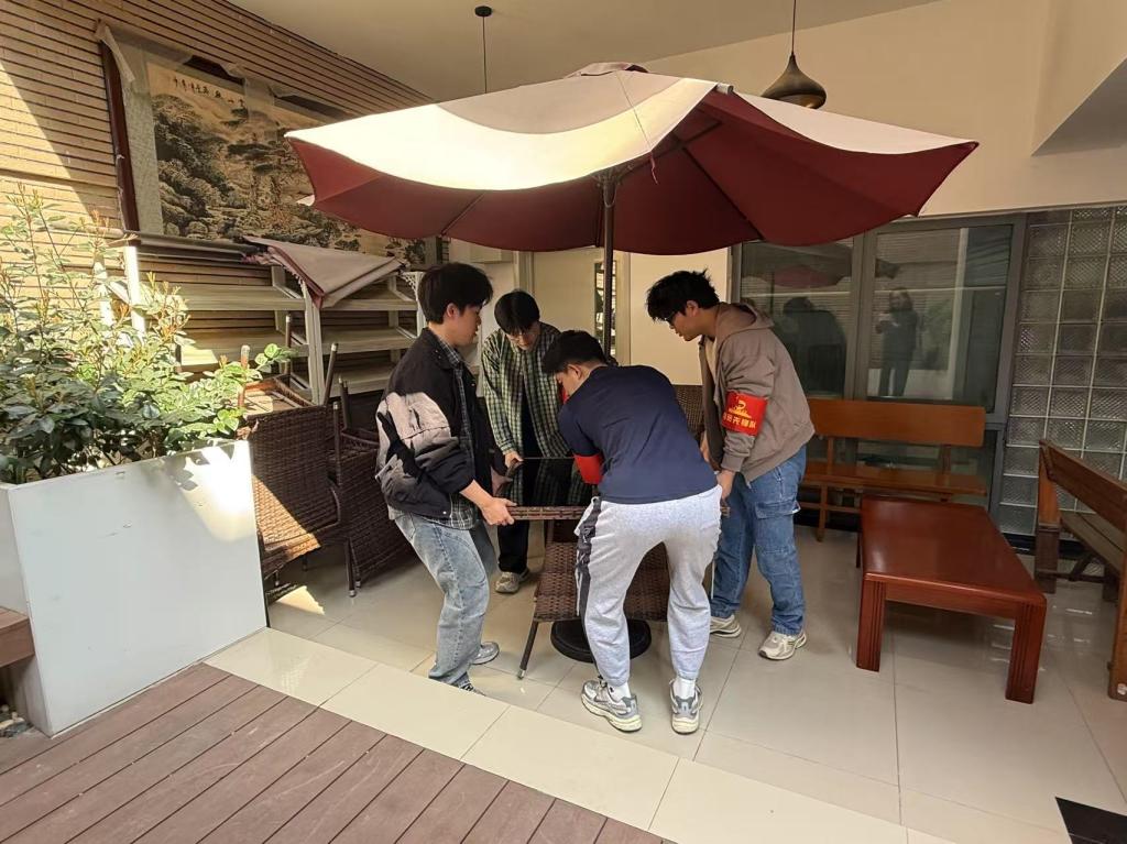 学院教室、仓库等是师生们举办学生活动、学术讲座、教育教学的主要场所。在使用过程中,教室存在着不同程度的桌椅摆放凌乱、桌洞残余垃圾等问题,仓库内部物资堆放混乱、桌椅遍布灰尘,影响进出取用。由于学院外墙改造,四楼阳台桌椅被搬运至角落,对同学们的使用体验造成影响。针对以上问题,研会成员首先向志愿者们介绍此次活动的主要内容,并为大家发放清扫工具,同学们现场分组开展清扫活动。