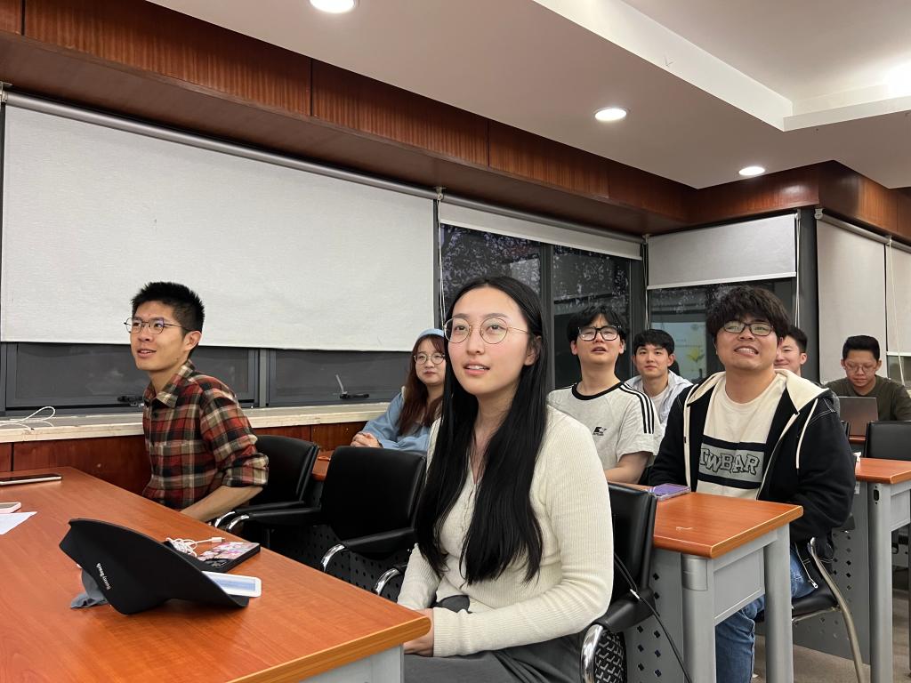 在同学们分享结束后,王冰教授与同学们展开互动交流。他强调,知识是应对时代变革的核心竞争力,也是当今时代最为宝贵的财富。他结合同学们分享的书目以及当前的国际局势,指出在充满不确定性的人工智能时代,我们应通过系统化学习构建认知护城河并善用科技工具突破个人认知边界,同时保持对科学本质的深度思考。此外,他还推荐了《毛泽东选集》《美国生活中的反智主义》等著作,倡导学生建立科学思维范式,还特别提出要立足本土知识体系,将经典理论与现实困境结合,通过“阅读-实践”的闭环实现认知升级,读万卷书,行万里路,最终形成兼具全球视野与本土洞察的问题解决能力,这样也才能真正将论文写在祖国的大地上。
