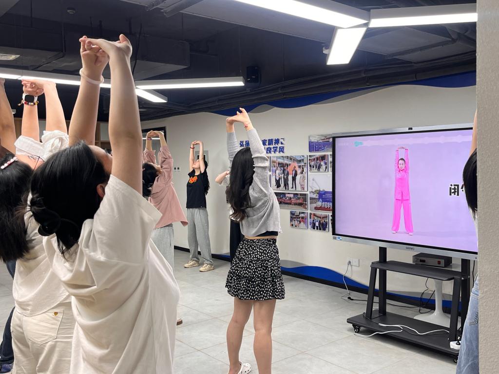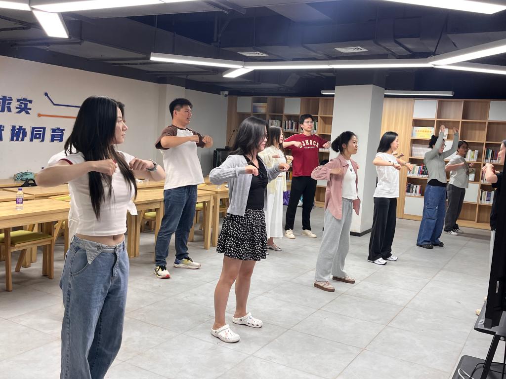 在舒缓的配乐中,学员们跟随教练舒展肢体,渐入佳境,最终连贯完成整套动作。粟晓丽以自身实践为例,希望师生能将这项养生智慧融入日常生活,在动静相宜中收获身心健康。