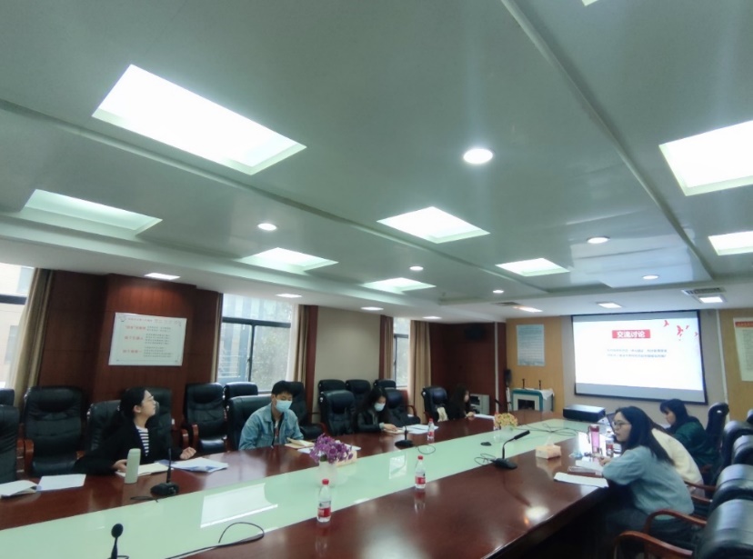最后,在贺晓芳同志的带领下,各支部书记围绕“如何加强党班团一体化建设”这一问题展开交流讨论。硕士2002党支部书记雷晓蓉同志认为:加强党班团一体化建设,可以建立“1+1+1”联系机制,一个党支部联系一个团支部和班级,共同开展理论学习和实践活动,增强党班团之间的交流,凝聚育人合力。其他支部书记也结合工作实际,依次提出自己的想法和建议。贺晓芳同志充分肯定了各位书记在支部工作中做出的努力,也希望各支部能以建团100周年和建校70周年为契机,将党史学习与团史、校史学习相结合,充分发挥党支部的战斗堡垒作用。