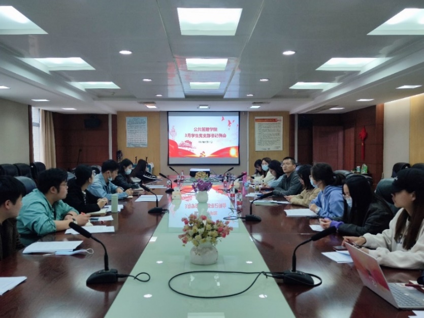 2022年3月17日下午14时,公共管理学院3月学生党支部书记例会于学院202会议室成功召开。学院党委副书记童文胜、组织部学生助理刘静、本科生辅导员翁萌珠、本科生兼职辅导员何梦颖、研究生兼职辅导员陈甜、贺晓芳以及研究生党务中心主席团成员、各本硕博学生党支部书记参加了本次例会。会议由贺晓芳同志主持。