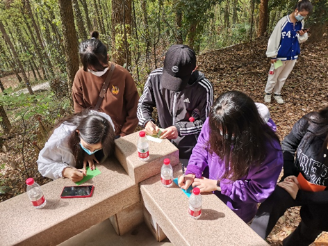 为进一步关注同学们的心理健康,释放压力情绪,登山过程中还设置了心灵寄语环节。同学们在小卡片上写下自己的登山感悟、生活烦恼与未来心愿等,将情绪释放出来,真正达到“传精神、增体质、强体魄、解情绪”的目的。卡片回收后,同学们自觉清捡周围的垃圾,积极践行“美丽校园,你我共建”的承诺,将志愿精神内化于心,外化于行。