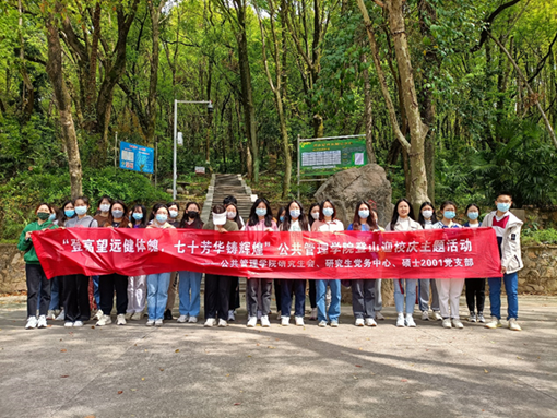 古路接悠远,山气入青岚。为进一步搭建研究生交流平台,丰富研究生服务载体,创新学生心理健康服务活动,3月29日上午,公共管理学院研究生党务中心、研究生会、硕士2001党支部联合举办“登高望远健体魄,七十芳华铸辉煌”喻家山登山活动。
