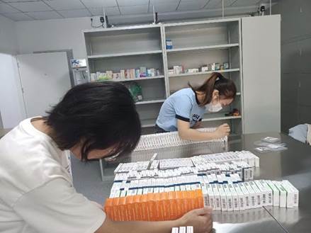此次志愿活动共分为三个小组进行。同学们于早上8点抵达校医院,在药剂科工作人员的指引下,开始进行药品的整理和分类工作。大家耐心细致,互相配合,累计工作24小时,协助校医院药剂科完成了多批药物的分拣、上架工作,有力减轻了医护人员的工作压力。