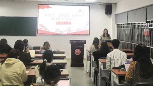 首先,外国语学院研究生第三党支部的张珊珊同学为大家分享了外文文献阅读技巧。她以“令人头秃的英文文献”引入,从文章结构的角度切入,为大家介绍了英文文献的谋篇逻辑和吴恩达式四步文献阅读法。最后,她以一篇文献为例,结合介绍的逻辑模式和阅读技巧,为大家分享了阅读英文文献的思路。