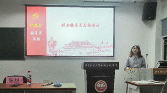 公管学院研究生兼职辅导员陈甜对大家为本次共建作出的努力表示了感谢,也对本次共建的内容和形式给予了高度认可。她从“党建+科研”的活动主题出发,谈到要通过党建带动科研的形式,凝聚党员力量,克服科研大关。最后,陈甜老师对两个支部的同学提出“必将大有可为,也必将大有作为”的寄语,也希望之后双方能继续加强交流。