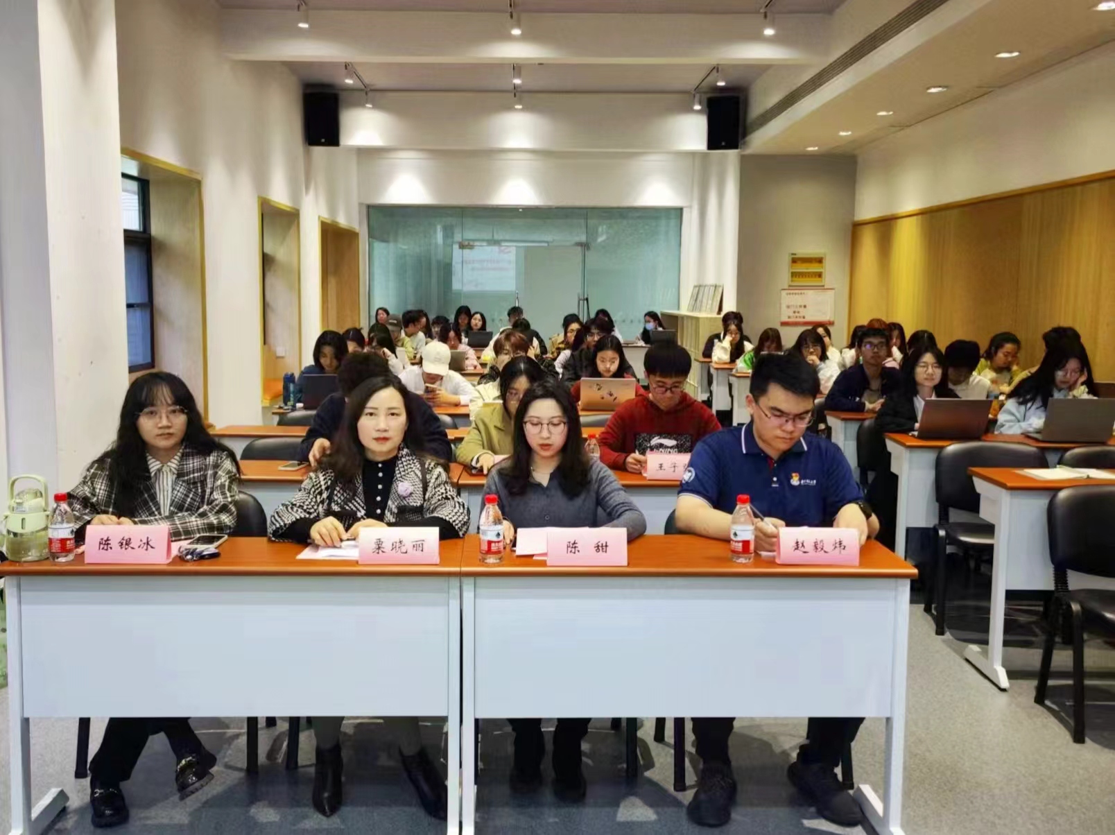 党建辅导员陈甜和研究生党建工作中心主席团成员石祯从项目培训会、课程筹备、课程及讲师选拔、项目启动会、课程预约通道等方面,详细介绍“公管之声”宣讲项目有关工作安排。