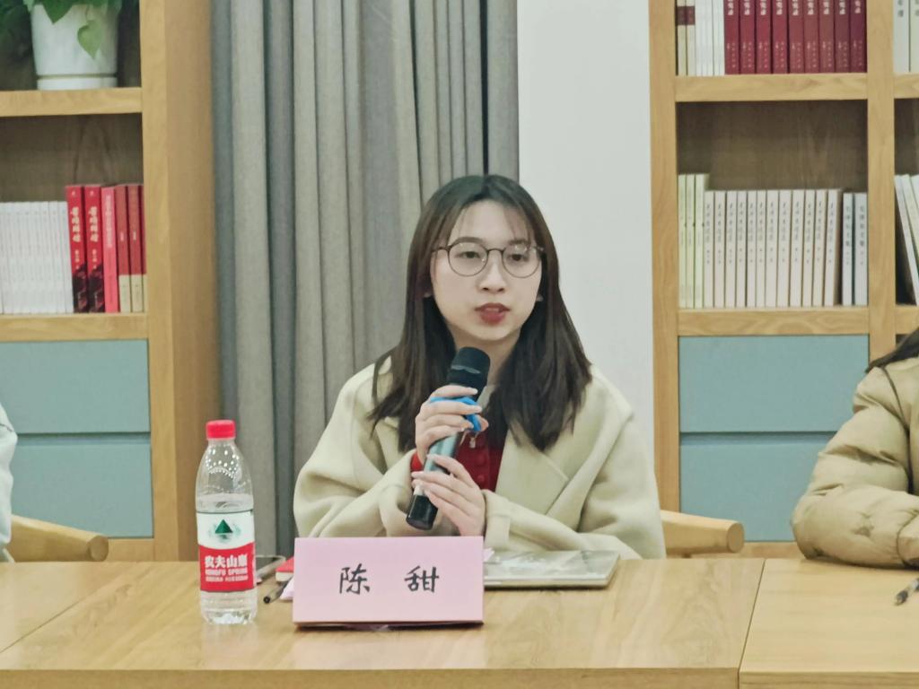 陈甜进行点评。她建议,小组成员可以从内容要点、发展状况、现实举措等方面继续深化案例分析。并强调,此次活动不仅是学习全会精神的机会,更是锻炼表达能力的重要平台,希望学生党员和入党积极分子们能继续结队,主动学习,深入思考,将理论与实践牢牢结合,不断提升自身能力和思想觉悟。