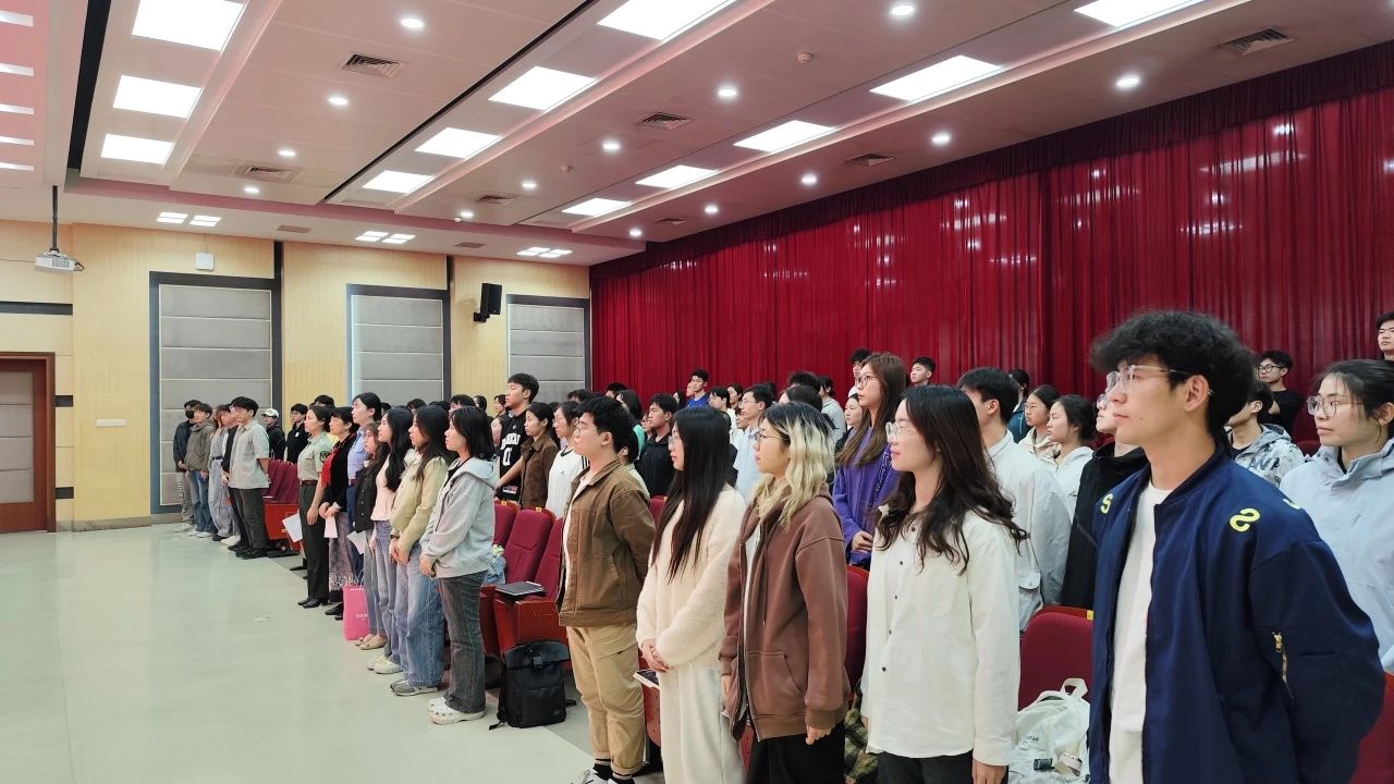 侯惠洋结合自己的成长经历,向同学们分享自己向党组织靠拢的心路历程。她表示,为人民服务是青年实现人生价值的崇高途径,作为一名入党积极分子,加强理论学习与实践锻炼,是成长为合格党员的必经之路。她呼吁,同学们应始终保持进取精神,认真研读党的百年奋斗历史,从党史学习中感悟信仰之力、传承红色基因、坚定理想信念,并加强理论运用与实践锤炼,做到用知识武装头脑,用行动践行理论,以实际行动争取早日入党。