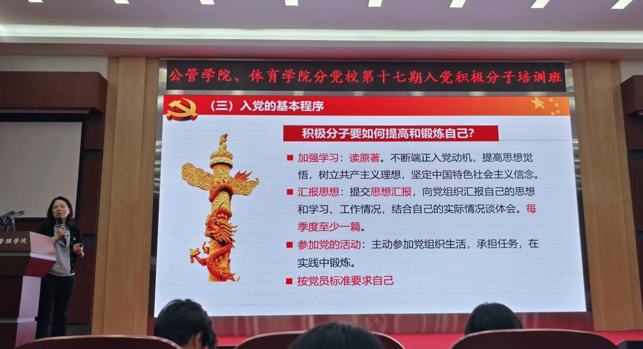 本次理论学习严格落实发展党员相关要求,经过此次培训,入党积极分子进一步领悟了党的性质宗旨、深入了解了党员的责任义务。公共管理学院、体育学院分党校将持续优化党员教育培训内容与形式,紧密结合时代热点与学院特色,为入党积极分子提供更具针对性和实效性的学习资源,以高质量党员培训助力高质量党员发展。