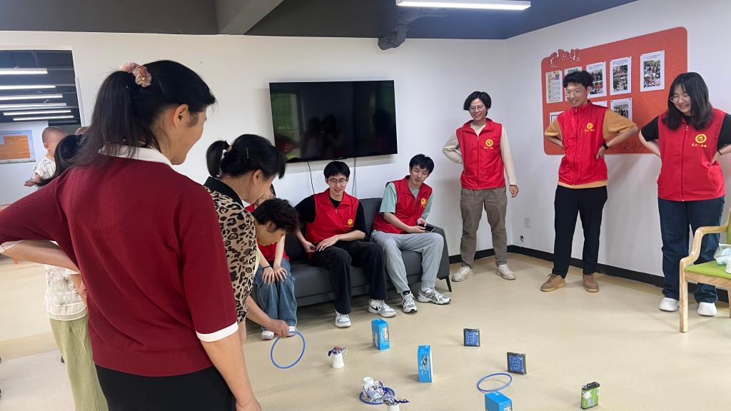 活动现场,志愿者们还组织了多场趣味游戏,架起青春与银发间的温情桥梁。筷子夹乒乓球接力、趣味套圈挑战等有序开展,老少组队默契配合,欢声笑语此起彼伏。在轻松互动中,志愿者们与长者们增进了代际交流,共享其乐融融的温馨氛围。