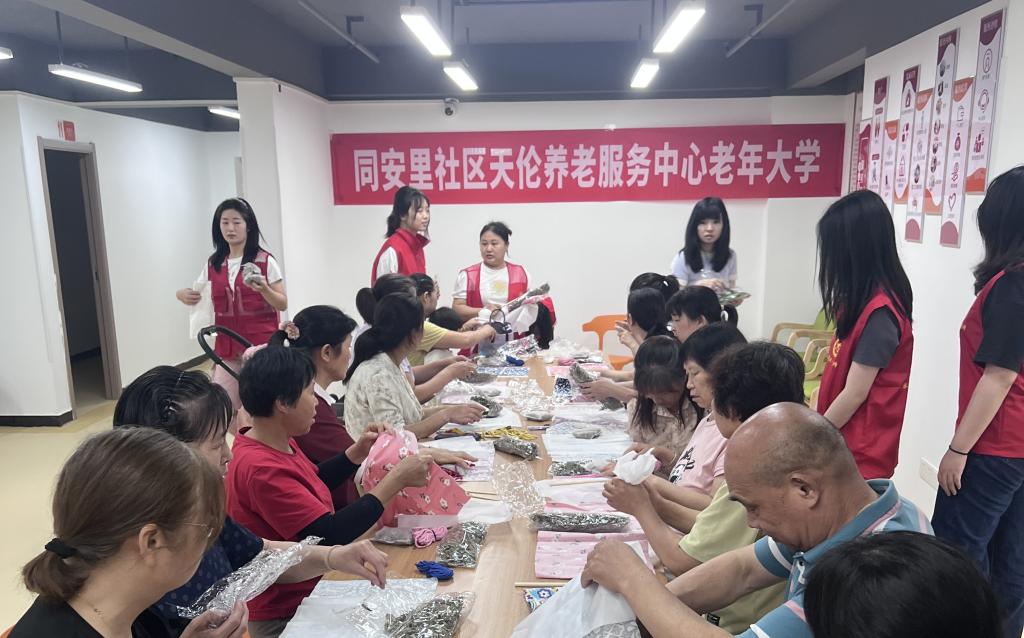 志愿者们结合日常养生场景,以中医理论解读艾草“祛湿散寒、理气活血”的药用功效,让古老的中医药智慧从典籍走入生活。随后,志愿者们分组为老年居民发放艾草锤制作材料,采用“拆解步骤演示+手把手指导”的方式讲解制作技巧。随着艾叶填充、棉布缝制等工序完成,散发草木清香的艾草锤逐一成型。活动中,老人们不仅掌握了手工技能,更沉浸式感受了传统中医药文化的魅力,纷纷为此次兼具实用性与文化性的活动点赞。