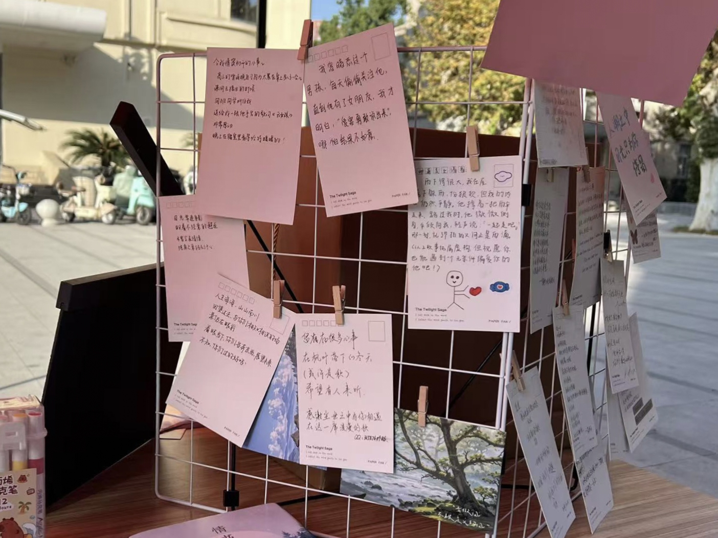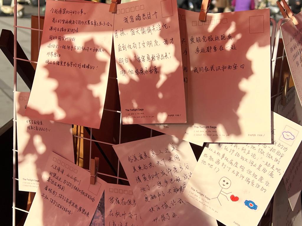 行管2301班王慧说:“在这次‘情窦初开’心理文化节活动中,我见到了许多不同的故事,甜蜜的、酸涩的、悸动的、朦胧的。那些情窦初开的时刻,在明信片、拼贴诗与拼贴画上一一呈现,和欢声笑语一起,带给我们温暖。”