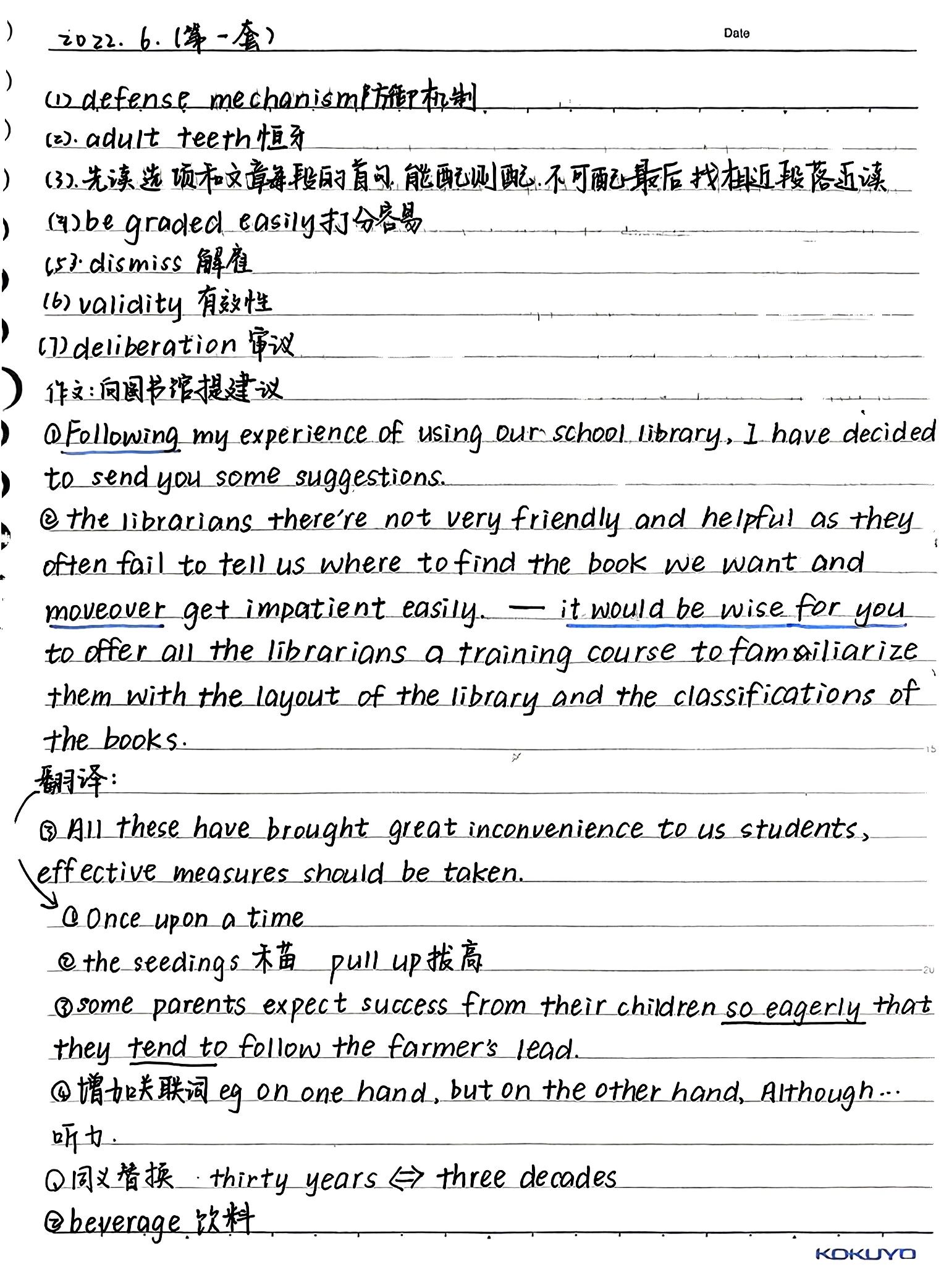 在学习过程中,我总结出一套行之有效的笔记方法:采用手写记录的方式,能有效加深对知识的记忆与理解;用相同颜色的笔记录更方便对重点内容加以特殊标注;秉持积累的理念,将英语单词、读书感想等进行分类整理,让学习更有针对性,帮助我提升了学习效率。
