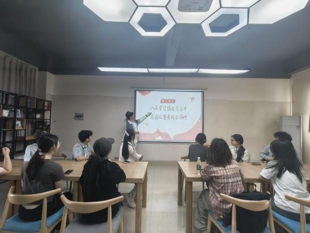 本次主题团日理论学习部分分为“习语集体学”和“习语大家谈”两个环节,并采取团支书带头讲、班级同学自主讲、交流研讨集体学的方式开展。团支书带领大家深入学习习近平总书记重要勉励指示精神,同学们围绕“深入学习领会2025年全国两会精神”“弘扬雷锋精神,践行青春使命”“规范文明出行,守护交通安全”以及“‘反诈月月读’防范电信诈骗安全教育”等主题,会前自主学习、会上自主讲解,主讲同学带领大家深入学习专题内容,感悟时代赋予青年的使命担当,并围绕“青年如何将个人理想融入国家发展大局”这一主题展开热烈讨论,共同分享学习心得、展开讨论交流。