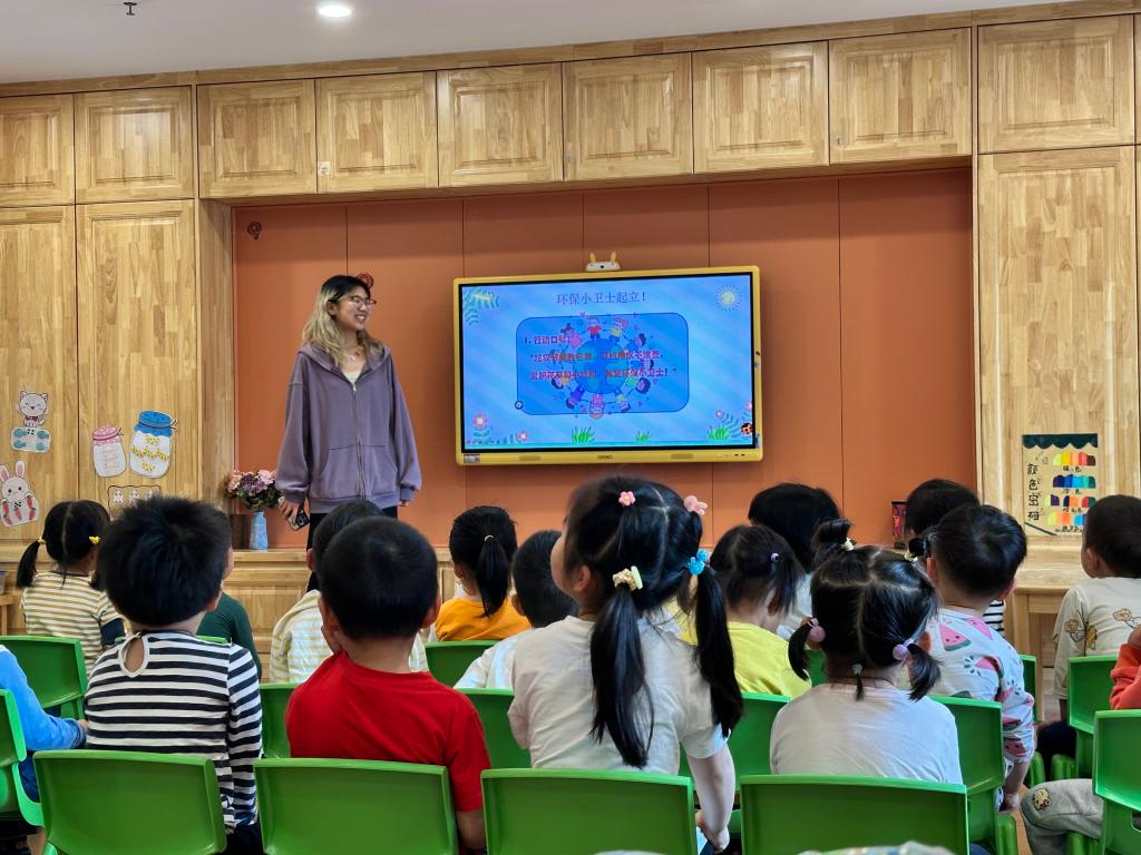 当孩子们走进教室,一场充满奇幻色彩的环保知识课堂正式拉开帷幕。同学们用生动有趣的PPT动画,将孩子们带入了一个奇妙的环保世界。在“垃圾分类小剧场”“资源回收大冒险”等环节,孩子们通过角色扮演和互动游戏,轻松掌握了垃圾分类的小技巧,体验着环保的乐趣。趣味问答环节更是将现场氛围推向了高潮,孩子们的小手高高举起,稚嫩的声音中充满了对绿色地球的热爱和理解。每一个童声朗朗的回答,都如同一颗颗绿色的种子,悄然在孩子们的心中生根发芽。