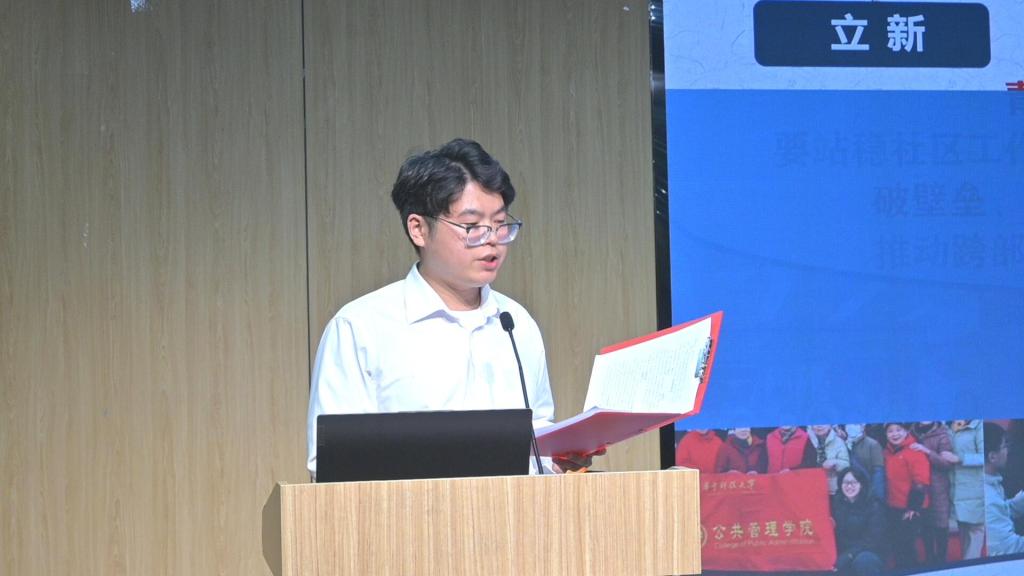 何磊作总结发言。他指出,学生骨干应发挥模范带头作用,团委学生会须秉持锐意进取的精神,在学业精进、工作实践、品德修养等方面树标杆、作表率。坚守“服务同学”的初心使命,精准回应学生诉求,真抓实干、务实笃行,筑牢服务之基、擎稳先锋之旗,在新征程中续写学生会工作新篇章。