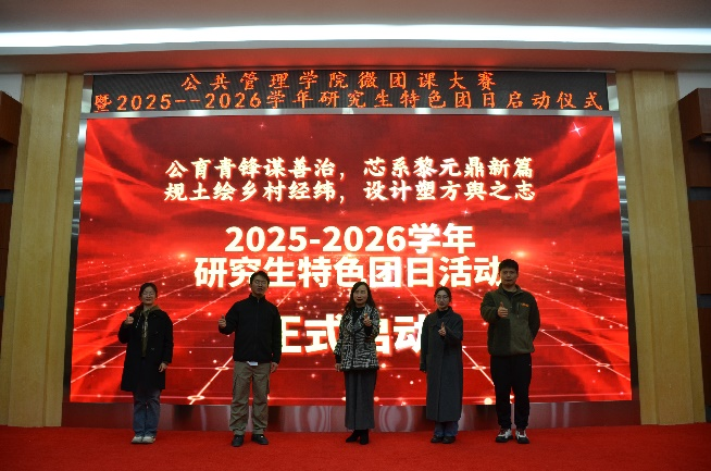 为深入学习贯彻党的二十届四中全会精神,以习近平新时代中国特色社会主义思想武装青年、引领青年、凝聚青年,12月1日,公共管理学院举办第三届微团课大赛决赛暨2025-2026学年研究生特色团日活动启动仪式。学院党委副书记粟晓丽,团委书记何磊、研究生辅导员陈甜参加活动。