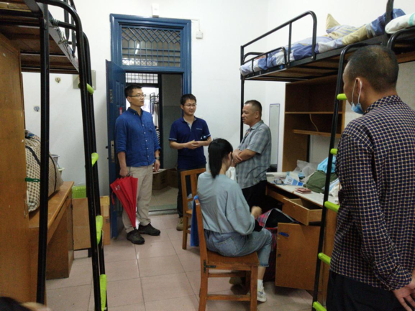17日下午16:00,公共管理学院党委副书记童文胜教授来到迎新点,向志愿者们的工作表示了肯定和感谢,并走进位于紫菘二栋、四栋、五栋的本科新生宿舍按房间逐一看望已经报到、还在宿舍的新生及其家长们。