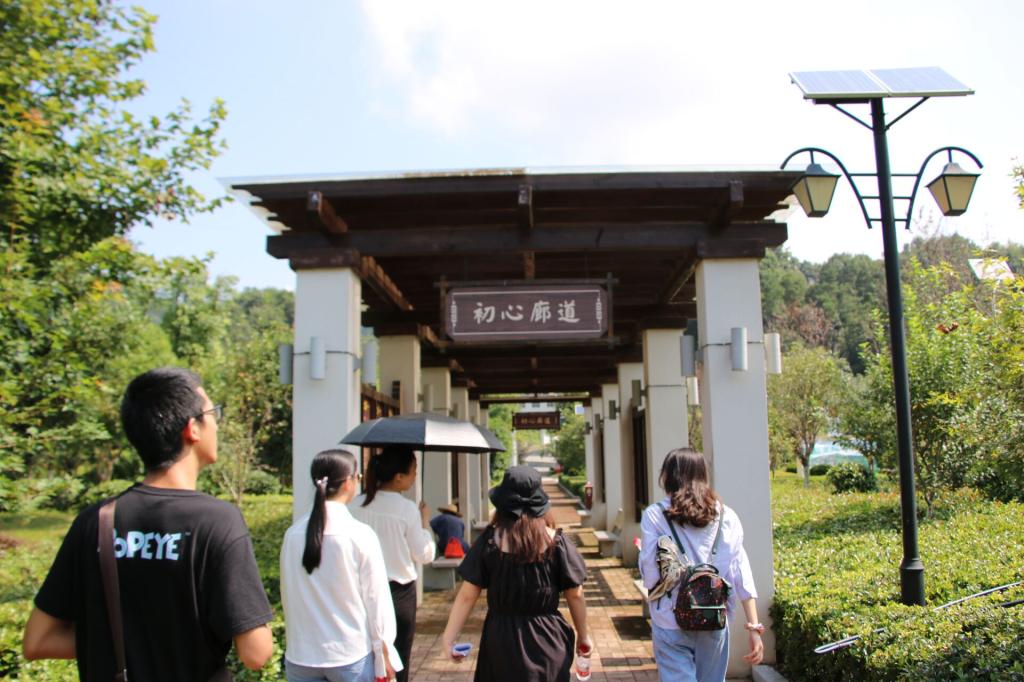 实践队前往三峡大坝库首太平溪镇,在韩鸿英主任的带领下,队员们参观了党建地“初心廊道“,村民文娱场所“百家宴”,宜昌绣女工艺品手工基地,聆听许家冲村的感人故事并体会到高尚的三峡移民精神的具体内涵。实践队还前往双狮岭茶叶专业合作社,在前支部书记李文洪的详细介绍下,充分了解许家冲村的历史沿袭,产业发展,村民现状和未来规划。