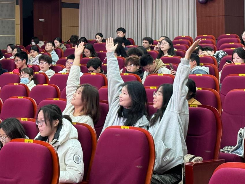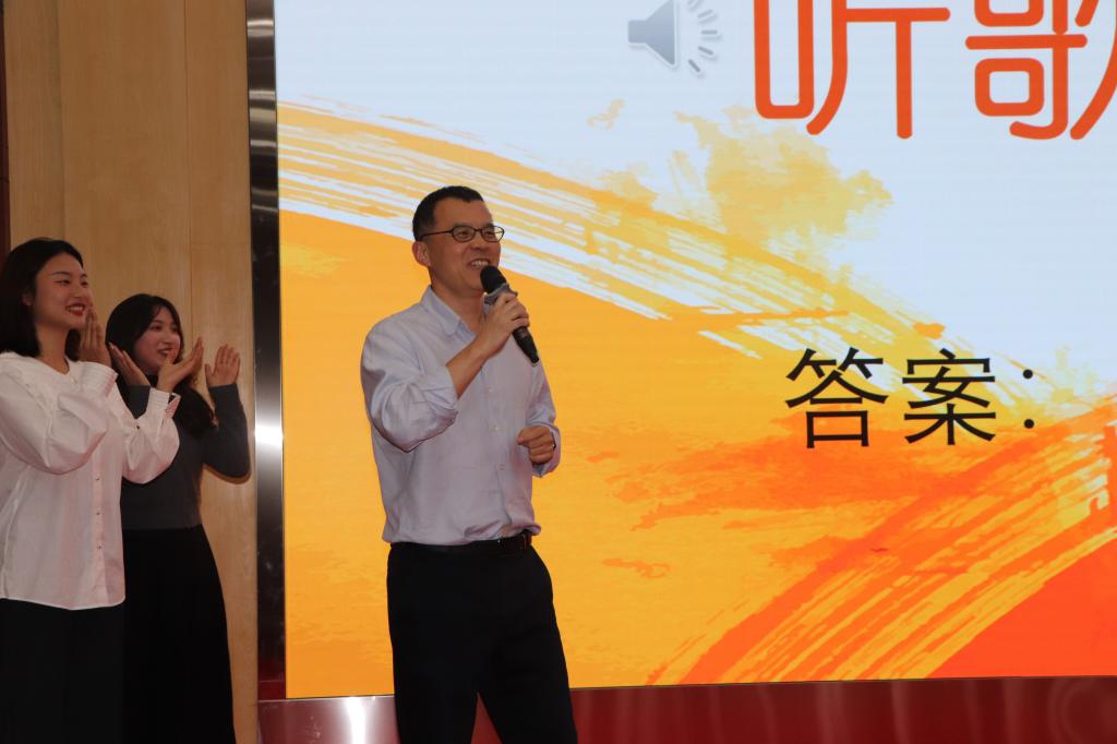 中场听歌识曲的游戏环节,师生共同参与、气氛热烈、欢笑不断。