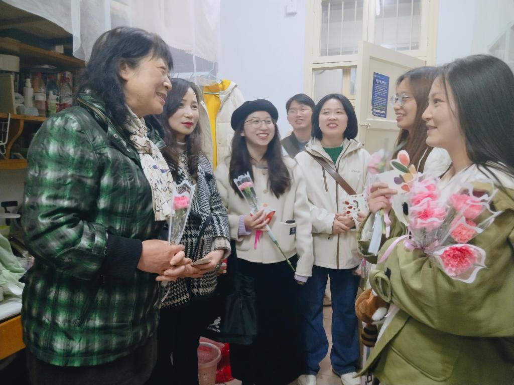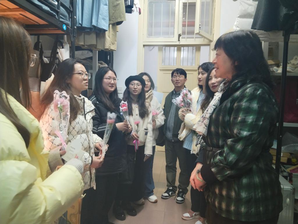 活动结束后,刘芳一行走访了紫菘2栋学院女生宿舍,给同学们送去美丽的鲜花和真挚的祝福。刘芳关切询问了大家在校学习和生活情况,叮嘱她们做好节日安排,更要记得给家中长辈致电祝福。走访毕业年级寝室时,刘芳特别关心同学们的学习和工作情况,勉励同学们要不断钻研专业知识、练就过硬本领、珍惜毕业时光,将来成长为祖国和人民贡献智慧和力量。