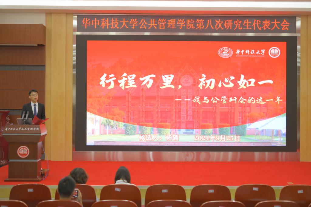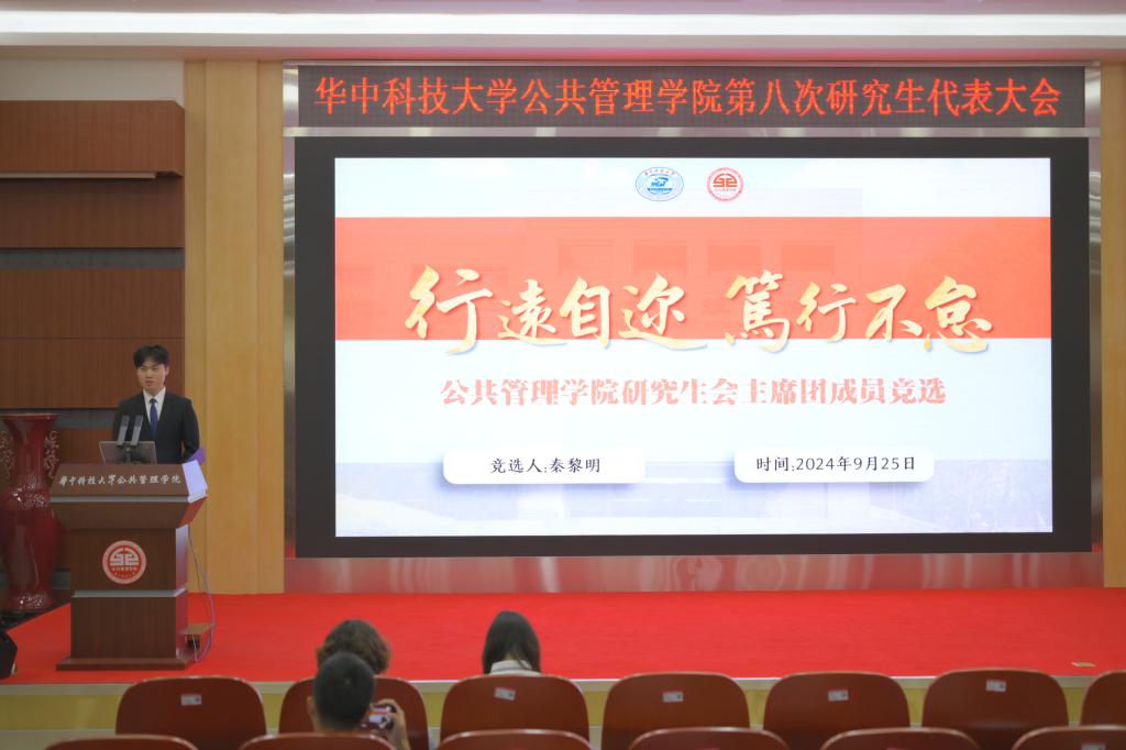 为激发学子活力,共谋学院发展蓝图,9月25日,公共管理学院第八次研究生代表大会召开。大会分为预备会议和正式会议,选举产生了第八届公共管理学院研究生会主席团成员,标志着公管研会在传承与创新中迈出坚实一步,开启继往开来、追求卓越的崭新篇章。