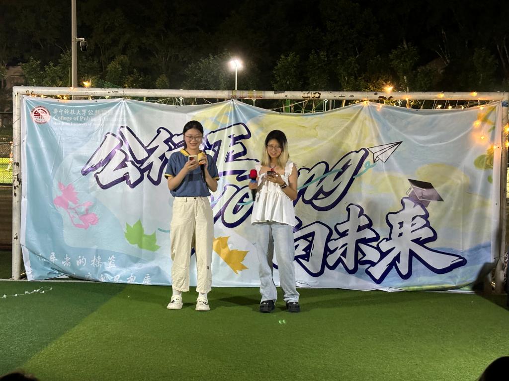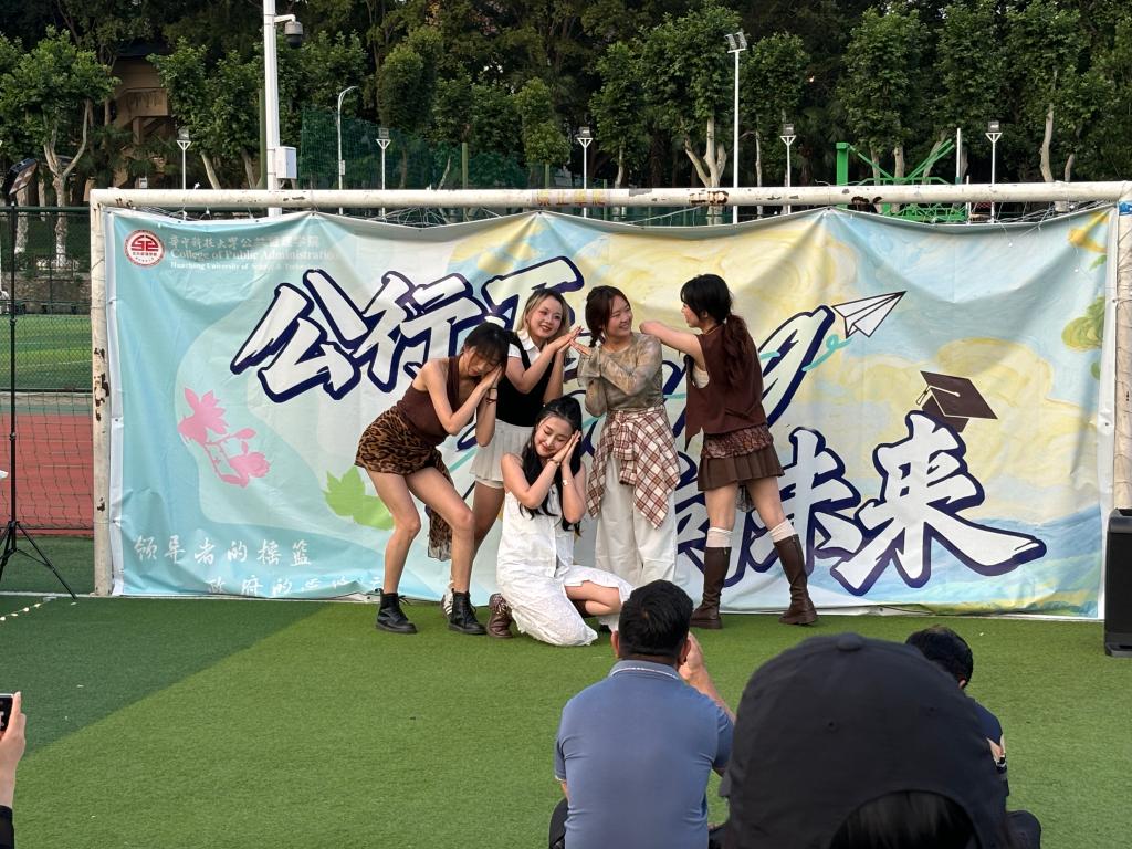 夜色渐深,舞台上公管学子的精彩节目接连上演,吸引了许多观众。