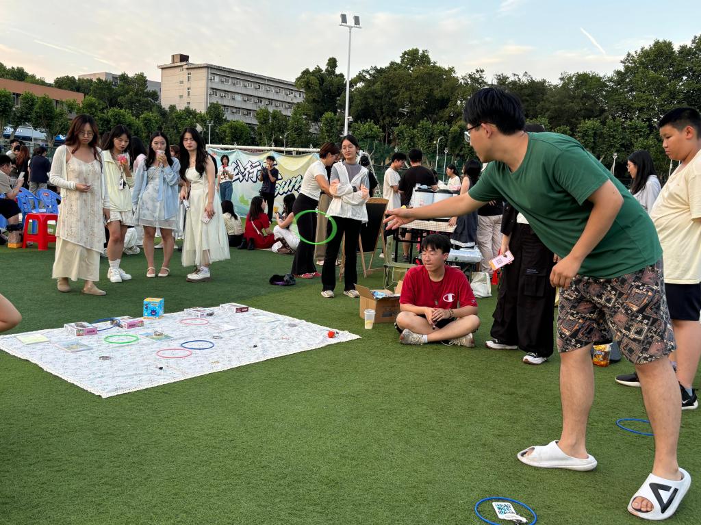 “快乐小画摊”成为热门打卡点,同学们用画笔表达对母校的眷恋和对未来的憧憬。“HUSTの青春物语”手工摊位展示了学生亲手制作的精美物品,凝结着华科大学子的美好回忆,成为毕业季独具情感的纪念品。由公管学院学生会文艺部策划的“欢乐套圈摊”成为最受欢迎的互动点之一,大家积极参与、欢笑不断,现场气氛轻松活跃。