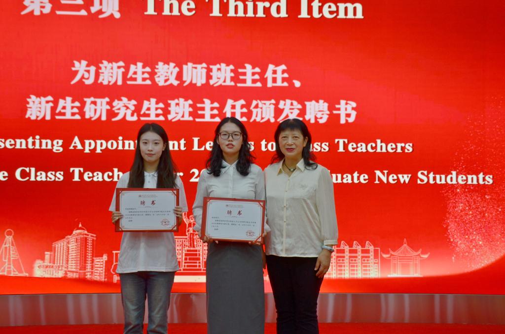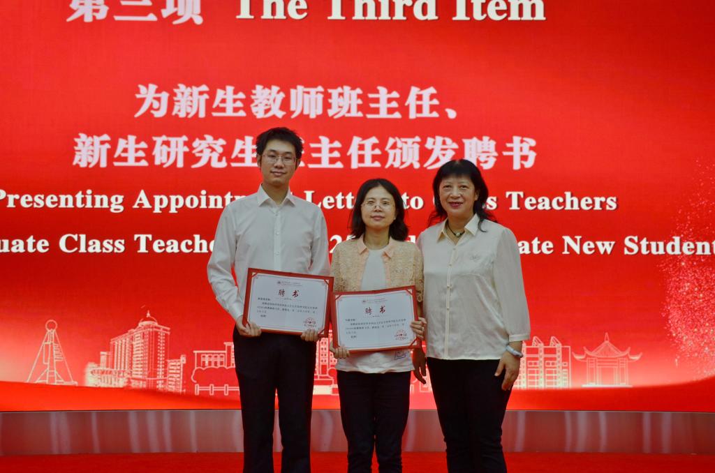 学院党委书记刘芳为2025级新生教师班主任、新生研究生班主任颁发聘书。班主任们接过聘书,将肩负起学业指导与成长陪伴的重任,成为新生融入大学、探索专业、健康成长的“引路人”和“同行者”。