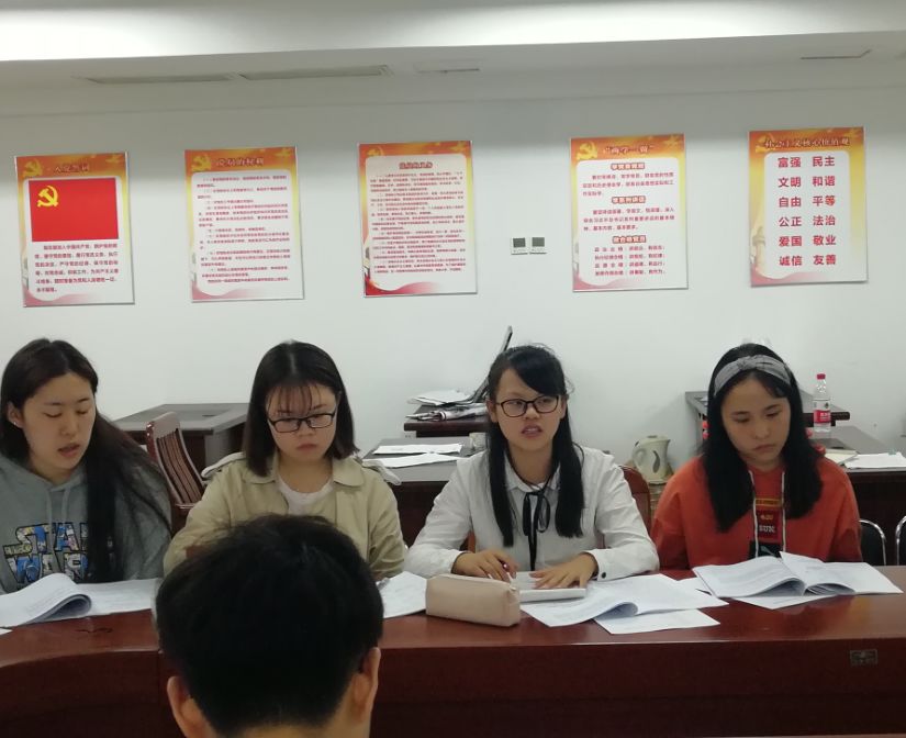 主持人陈甜首先带领大家回顾了两则“学生会耍官威”的事件,学生会主席牛琳带领全体学生干部共同学习了总书记关于青年的论述及中华全国学联关于《学生会、研究生会干部自律公约》的倡议,并号召全体学生干部积极响应倡议,他说道,18级新成员加入后,分团委、学生会更加有活力和朝气,作为学生组织的干部应该以身作则,以平等的姿态与学弟学们相处,我们所有学生干部首先是学生其次才是干部。