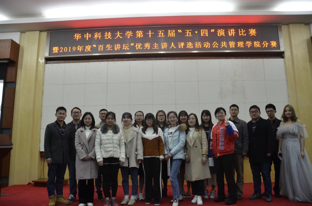3月24日,伟德国际1949始于英国第十五届五四演讲比赛暨2019年度“百生讲坛”优秀主讲人评选活动公共管理学院分赛在学院报告厅举行。学院党委副书记童文胜老师、校团委组织部部长李文龙老师、院分团委书记徐川老师、研究生辅导员罗东春老师出席了本次比赛。