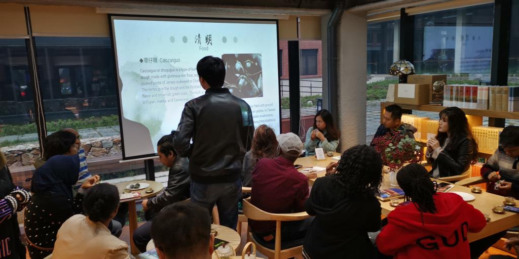 【通讯员 沈蕊】2019年4月11日下午,我院在梧桐语问学中心九思书苑组织了2019年第一期中国传统文化沙龙——国际学生清明节文化传统交流活动。国际教育学院国际学生办公室主任黄超、对外汉语教学中心办公室主任严薇、我院国际学生辅导员张媛、国际学生教务员崔雨诗、多名学院学生会成员和国际学生参加了活动。本次沙龙由辅导员张媛主持,活动包括中国学生介绍清明文化,中外学生共同交流讨论节日习俗,不仅在浓浓茶香中向国际学生展示了优秀的中华民族传统文化,也在欢声笑语中增进中国学生与国际学生之间的情感。