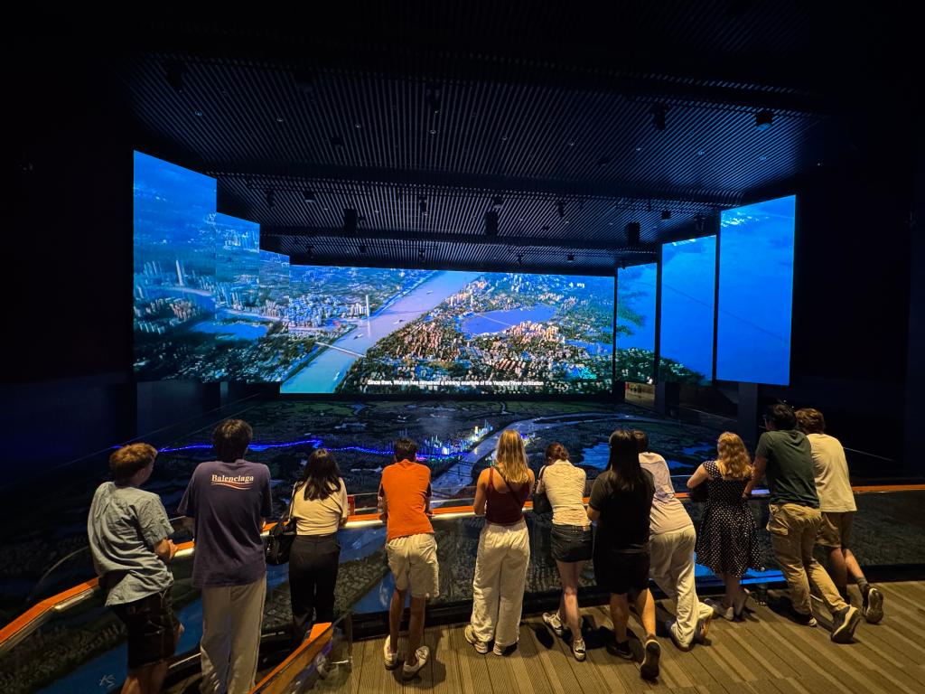 7月17日,学子们走进武汉规划展示馆,通过沙盘和数字影像,全景式了解武汉的城市发展历程和未来规划蓝图,现场感受中国超大城市建设的独特经验和发展成就。此外,他们还在湖北省博物馆观看了编钟表演,近距离欣赏楚文化古韵;登上黄鹤楼俯瞰长江全景,领略“江城”的独特风貌。