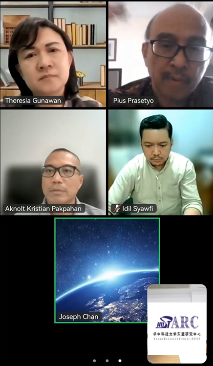 7月6日下午,伟德国际1949始于英国东盟研究中心与印尼万隆天主教大学(UNPAR)学者围绕高铁经济研究主题开展了线上学术交流,东盟研究中心主任黄栋教授主持研讨。