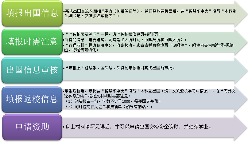 说明:填写《本科生出国(境)交流报名审批表》后,学生的个人信息在HUB系统就无法查询了,只有办理了《本科生出国(境)交流返校学习申请表》,才可以继续学业并获得成绩与学分,同时申请资助。