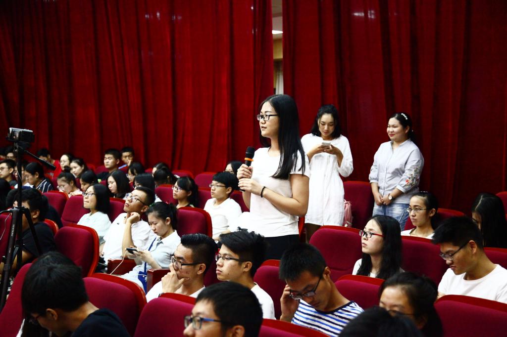 杨宏银分别讲述了推行“按户连片耕种”的背景、方法、好处,并从逻辑学、法学、政治经济学、制度经济学、群体心理学和历史学等不同视角分析了“按户连片耕种”在沙洋全县取得成功所带来的启示。与此同时,杨宏银还以生动活泼的视频和简明扼要的图表,为大家解释了什么是“三稳定、一调整、两集中”,“一主一辅一不得”等指导思想和基本原则。其中,在介绍沙洋广大干部群众自编、自导、自演的歌曲《按户连片耕种让农村变了样》、湖北大鼓《按户连片耕种好模式》和快板《按户连片耕种好》时,杨宏银告诉大家,一项改革的推开离不开有效的宣传,正是这种老百姓喜闻乐见的宣传方式,潜移默化地增加了广大群众对“按户连片耕种”的认同感,这是比去老百姓家上门做工作更为有效的工作方法。杨宏银说,推行“按户连片耕种”过程中,在华中大公共管理学院7年求学积累的理论知识对实践发挥了正向积极的指导作用,群众的满意度也印证了华中大公共管理学院是名副其实的“政府的思想库”。顿时,整个讲堂响起了热烈的掌声。