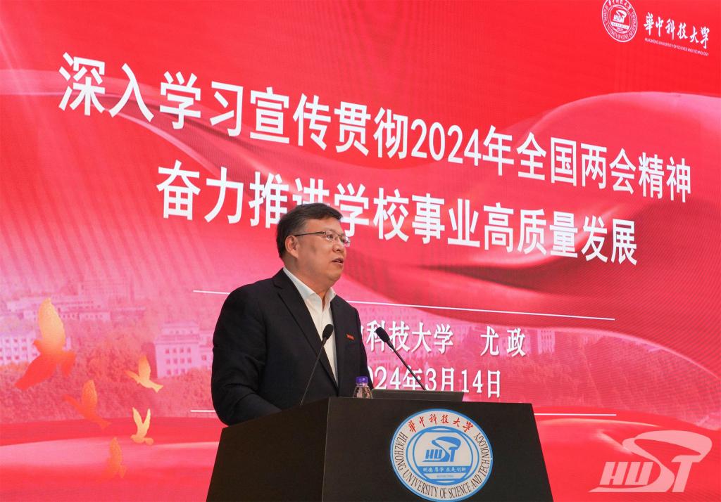 全国人大代表,校长尤政以“深入学习宣传贯彻2024年全国两会精神 奋力推进学校事业高质量发展”为题作报告。围绕“全国人大会议主要成果”,他指出,今年的全国人民代表大会更务实高效,是世界观察中国的窗口,为推进中国式现代化注入强大动力,传递出“咬定青山不放松”的坚定信心,吹响了风雨无阻向前行的奋进号角。尤政传达学习了两会期间习近平总书记的重要讲话精神,以及人大常委会工作报告、最高人民法院工作报告、最高人民检察院工作报告、国务院组织法修订草案等内容。在解读政府工作报告时,他结合亮眼数据阐述了报告中提到的新质生产力、新兴产业、新型能源体系等十个“新”,以及实施科教兴国战略等2024年十大任务。在解读“两高”报告时,尤政分享了他在审议报告过程中就具体案例提出建议并分获最高人民法院和最高人民检察院致信感谢的经历。