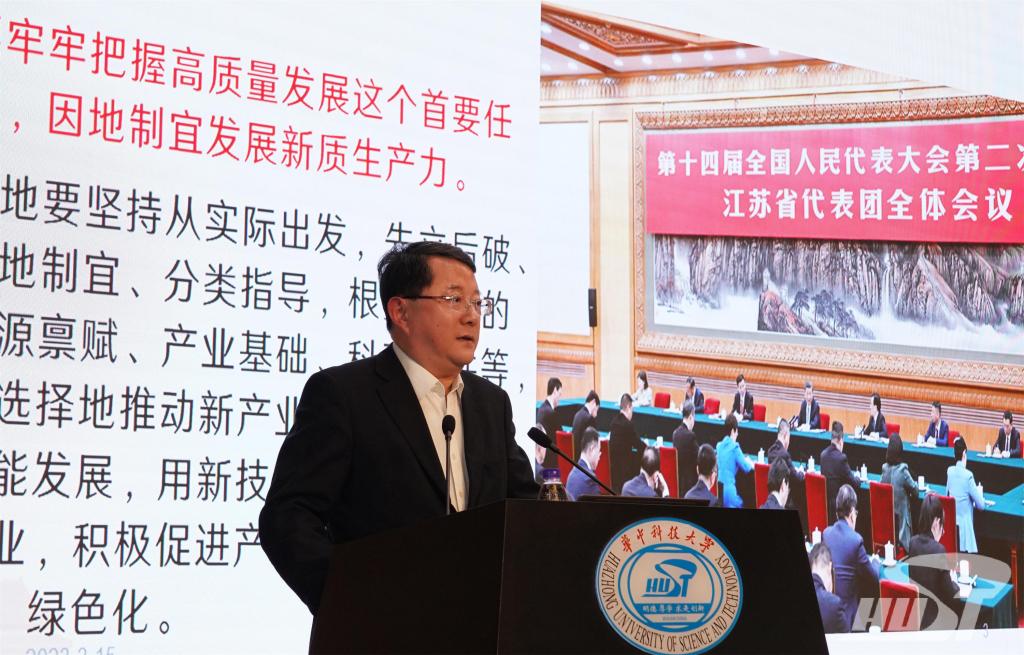 围绕“两会中的华科大声音”,尤政介绍了娄勤俭、张宗真、黄立、张晓仑、周云杰、苗伟以及闫大鹏几位校友在两会中不负重托,建言献策,印刻在他们身上的华科大基因指引着他们积极为祖国发展、民生改善建言献策。