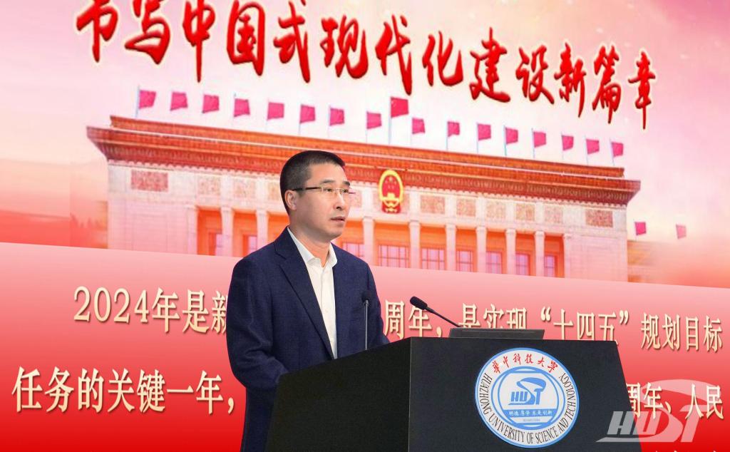 张广军以“书写中国式现代化建设新篇章”为题作报告。围绕2024年全国两会总体概况,他指出,2024年全国两会是全面贯彻落实党的二十大精神和二十届二中全会精神的一次十分重要的会议,是高举旗帜、团结奋进的大会,是民主求实、成果丰硕的大会,是务实高效、风清气正的大会。结合详实数据与具体案例,张广军介绍会议议程、提案议案,解读政府工作报告、人大常委会工作报告、政协常委会工作报告等5份报告,并简要介绍我校7位代表委员的参会情况。